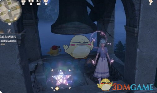 登上钟楼,位于巨钟之侧,借助净化之力敲击钟体,便可成功收集到奇想星。
