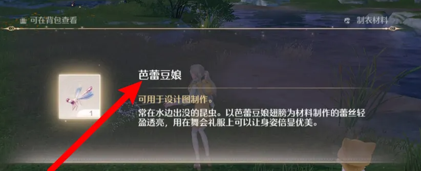 3、找到彩色蜻蜓后,点击捕捉,捕捉后即可获得芭蕾豆娘,其翅膀作为舞会礼服的蕾丝制作材料。
