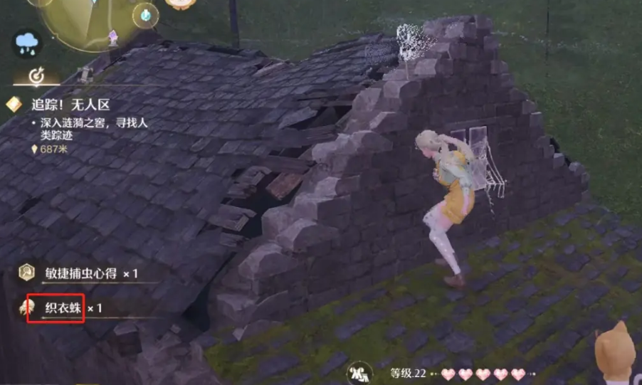 2、找到织衣蛛,长按捕虫图标,进行捕捉