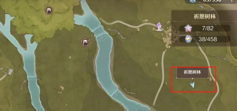 1、打开地图,祈愿森林箭头位置