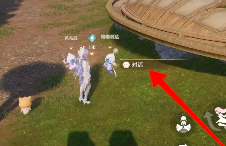 4、最后回到“噜噜利达”旁边,点击“对话”,即可完成完成毛茸茸与亮晶晶任务。