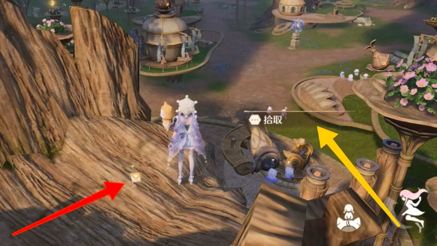 1、点击任务追踪,操纵暖暖跳向“噜噜利达”背后的平台。