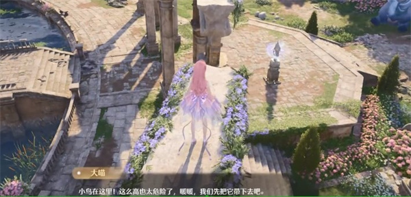 来到地点之后,与蓝龙对话,蓝龙会让你寻找小鸟。玩家可以通过小鸟羽毛的踪迹,找到小鸟。