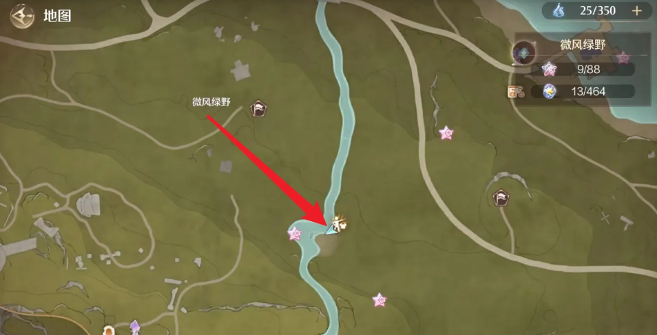 2、进入界面,点击前往微风绿野河岸位置