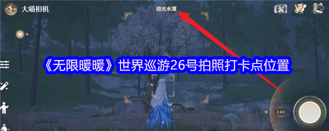 无限暖暖世界巡游26号怎么拍照?世界巡游一共有40个地点需要拍照打卡,大家完成拍照并上传可收获到相机升级材料包奖励。下面是小编给大家带来的《无限暖暖》世界巡游26号拍照打卡点位置,世界巡游26号拍照点在微光水潭。不清楚该打卡点位置拍照方法的速来!