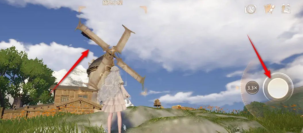 3、对准识别出“捕虫小屋”后,点按相机快门拍照。