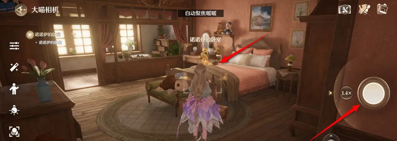 3、对准识别出“诺诺伊的卧室”后,点按相机快门拍照。