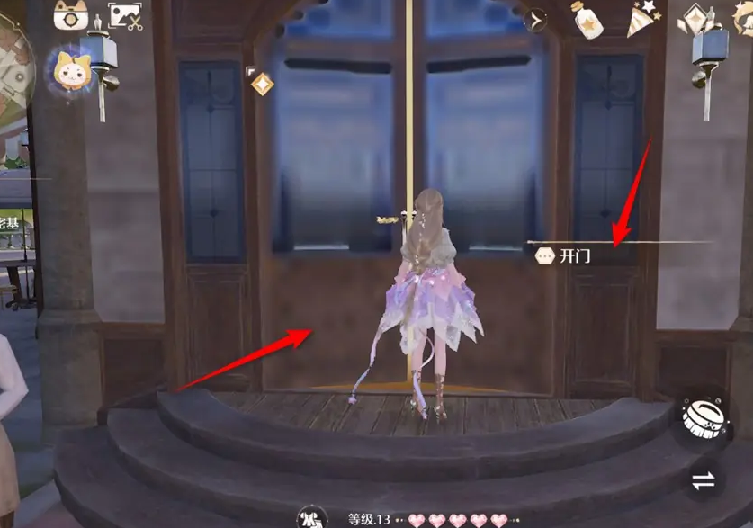 1、来到位于花愿镇的飞鸟餐厅门口,点击“开门”进入飞鸟餐厅内部。