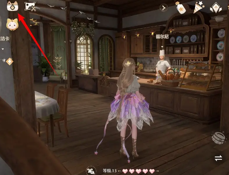 2、来到飞鸟餐厅甜品台前,点击照相机图标。