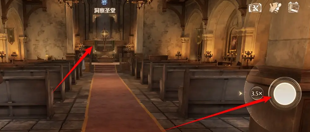 1、进入游戏,来到洞察圣堂内。