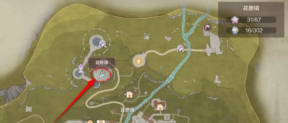 1、来到花愿镇遗迹广场区。