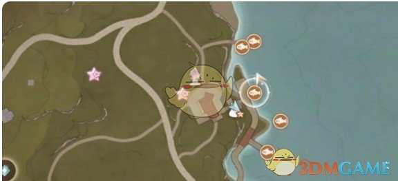 3、粉色缎带鱼:使用粉色级带鱼与米切利累计进行4次兑换,米切利位置如下图所示。