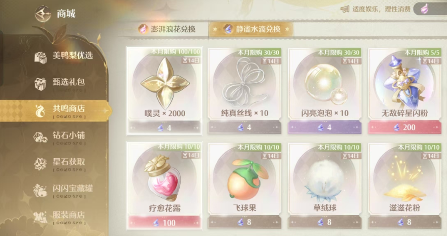 在游戏的商城里面,玩家可以利用材料或者是货币来进行兑换,这时候能够获得澎湃浪花,不过玩家在使用的时候是会有所要求的,比如利用澎湃浪花去兑换其他的物品,在数量方面会有限制。