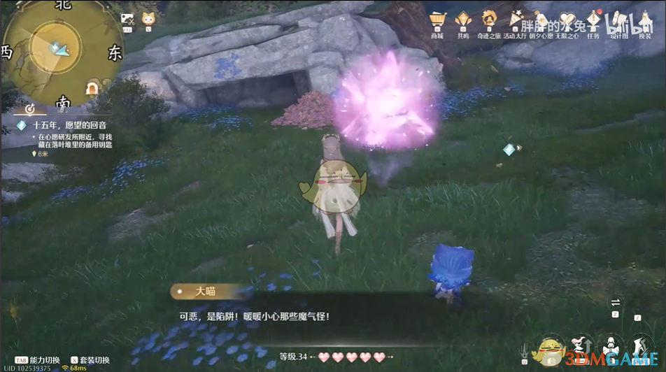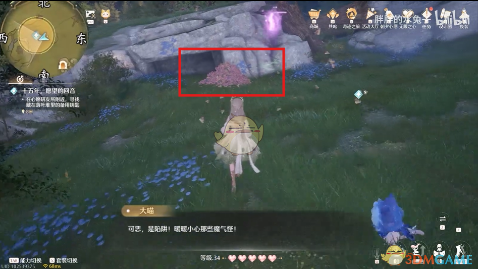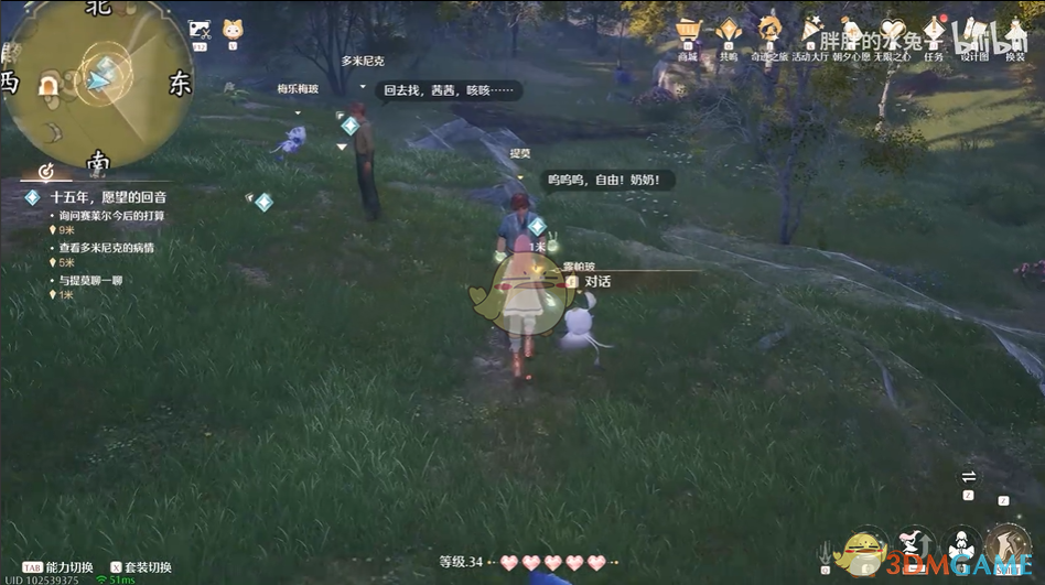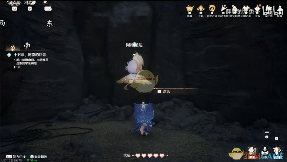 2、前往祈愿树林-心愿圣殿室内,找到NPC吉吉罗达对话,触发任务。