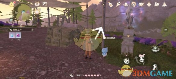 1、可以传送到小石树田村的火冠石树传送点,然后往右上跑到红圈的游戏点。
