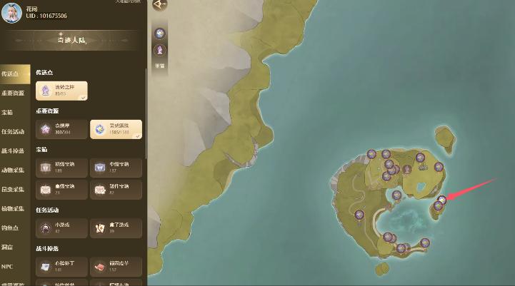 3、然后绑定账号,就可以查漏了!!点击左侧想查询的,然后看地图中,发光的就是没收集的!!目前只上线了灵感露珠、奇想星、传送点的查漏,但是也够用了!!