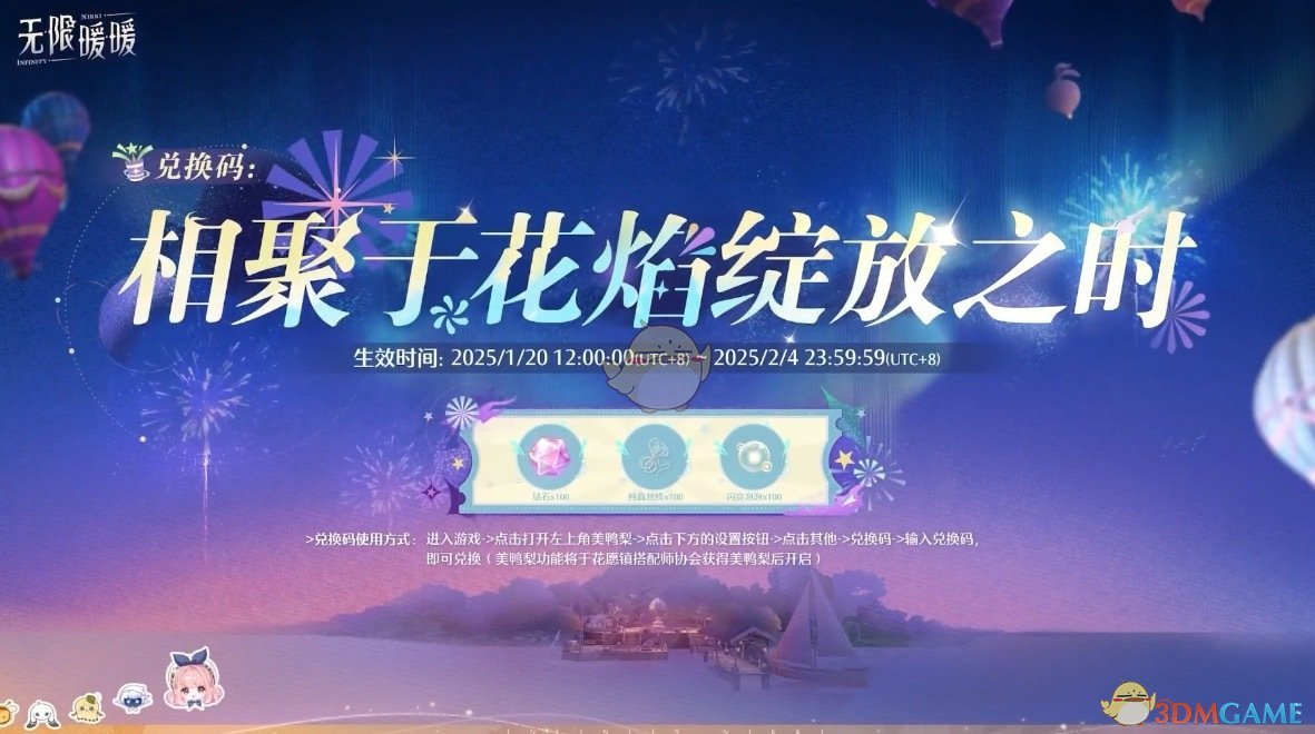>兑换码福利内容:粉钻*100、纯真丝线*100、闪亮泡泡*100