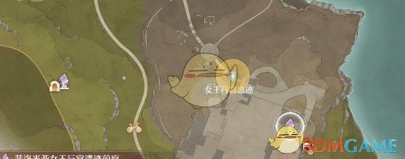 2、传送到菲洛米亚女王行宫遗迹前,向西北方向前进。