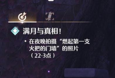 无限暖暖满月与真相第二个任务是一个拍照任务,描述是需要在夜晚拍摄燃起第一支火把的门墙的照片,下面是小编给大家带来的《无限暖暖》满月与真相拍照任务攻略,感兴趣的小伙伴们一起来看看吧。