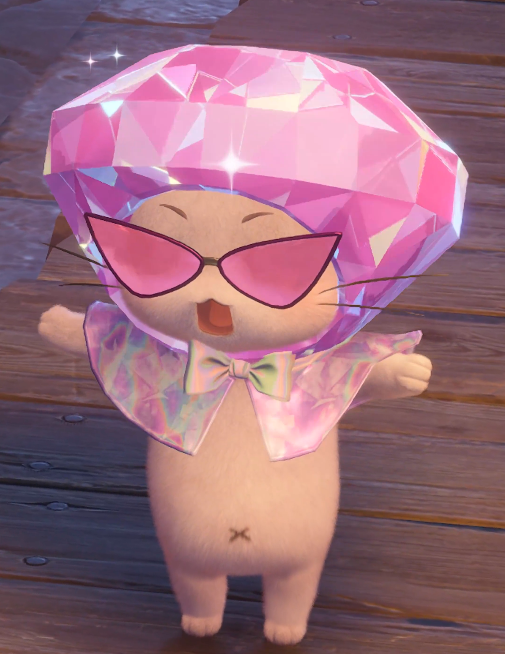 【闪耀登场】,售价120无垠星石,购买可得帽子【闪闪惹人爱】,面饰【气场全开】和【大喵斗篷·无限闪耀】