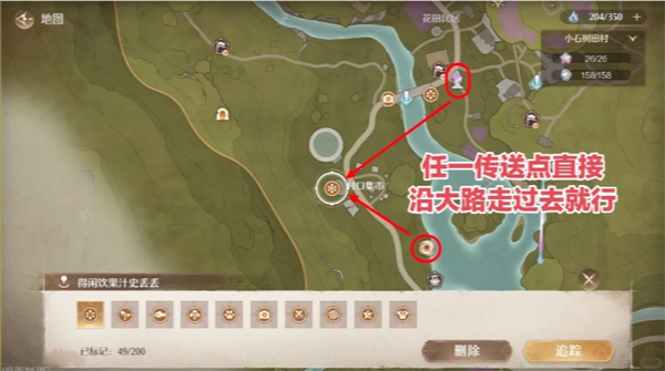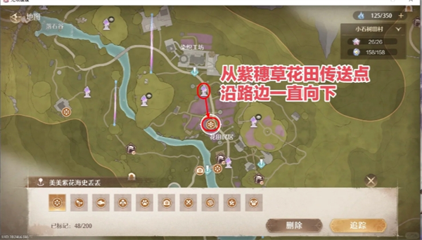 从小石树田村的「紫穗草花田传送点」沿道路一直向下走到箱子旁边