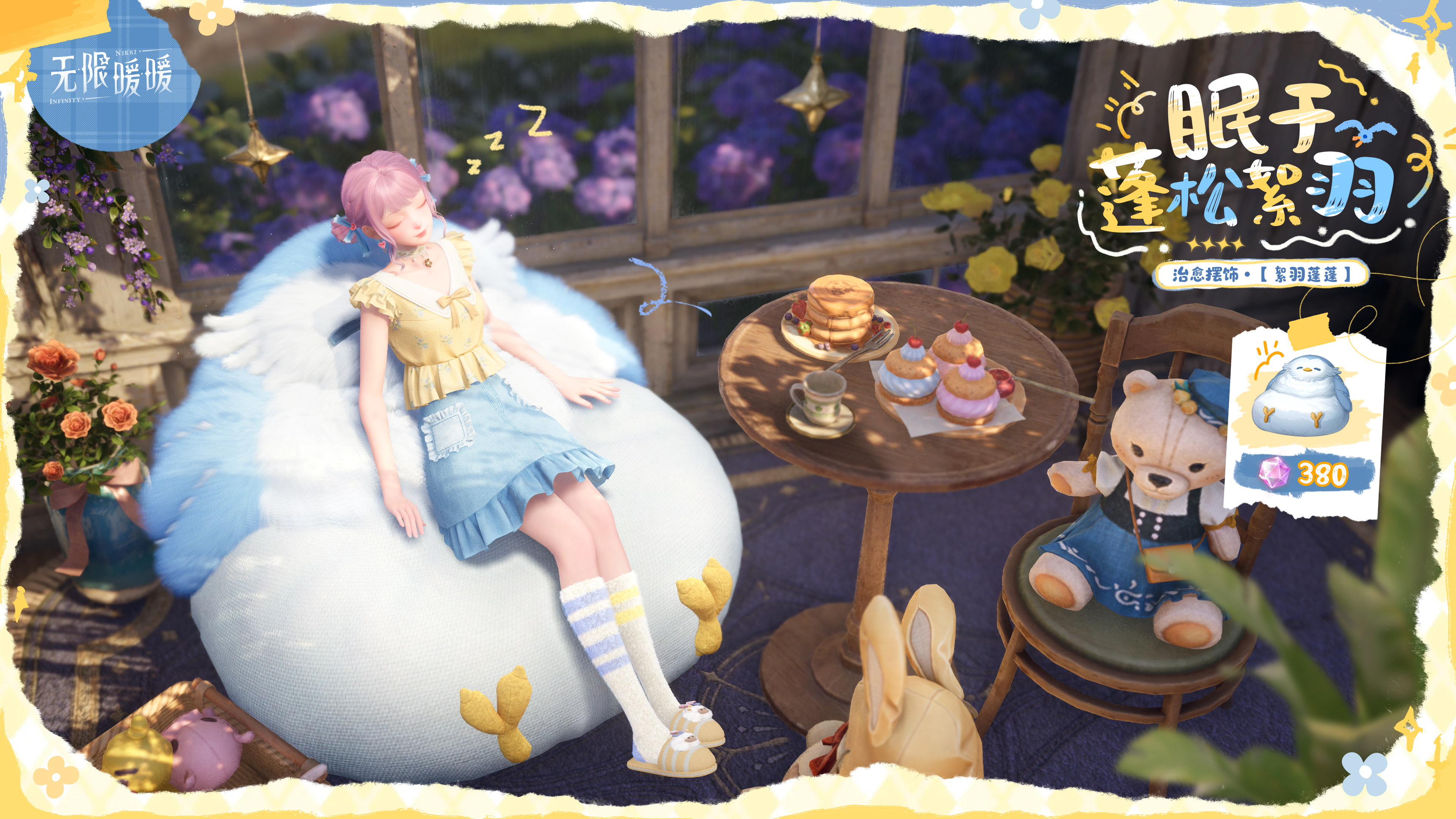 花费380钻石即可获得:摆饰【絮羽蓬蓬】!