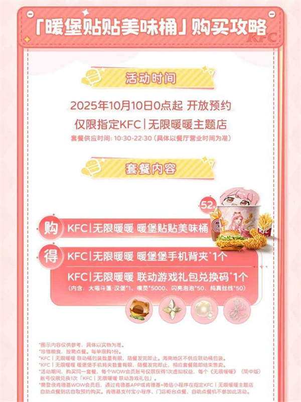 活动期间,玩家可在全国肯德基门店购买限定联动套餐,获得对应周边与游戏礼包: