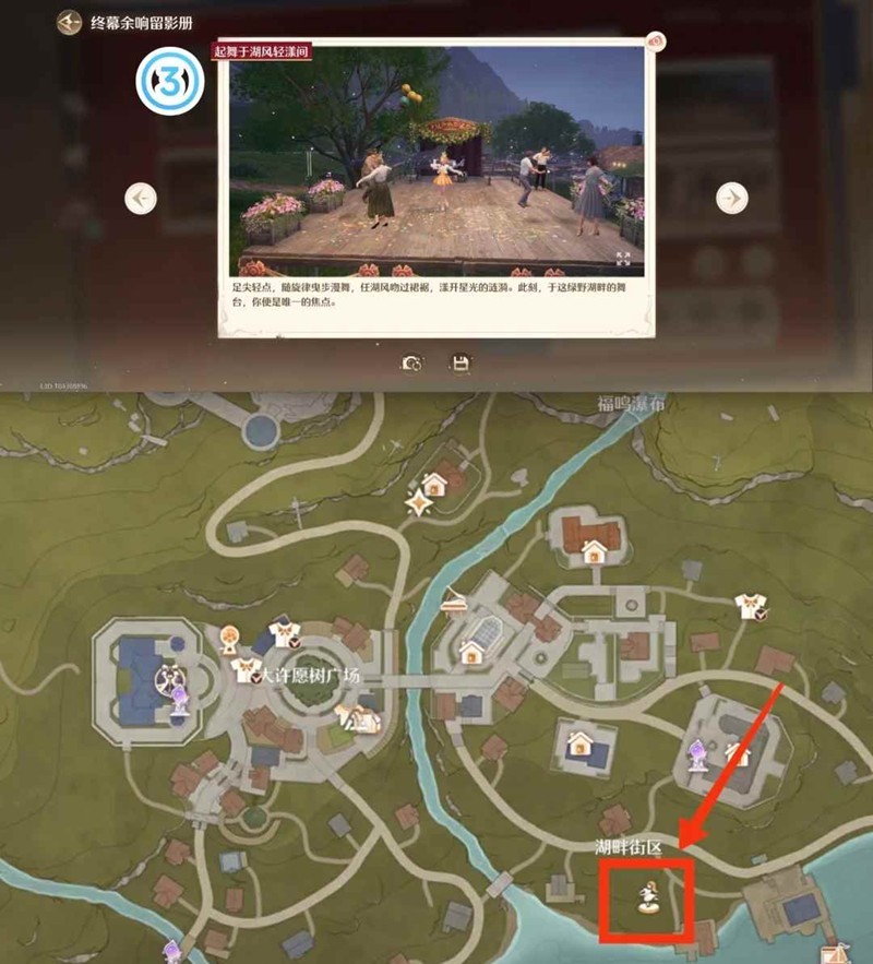 ③起舞于湖风轻漾间——于花愿镇的湖畔街区 湖风轻漾舞台上拍照获取,最近传送点:镇长宅邸前