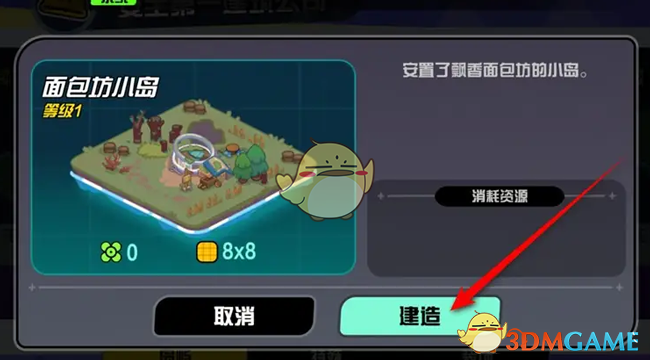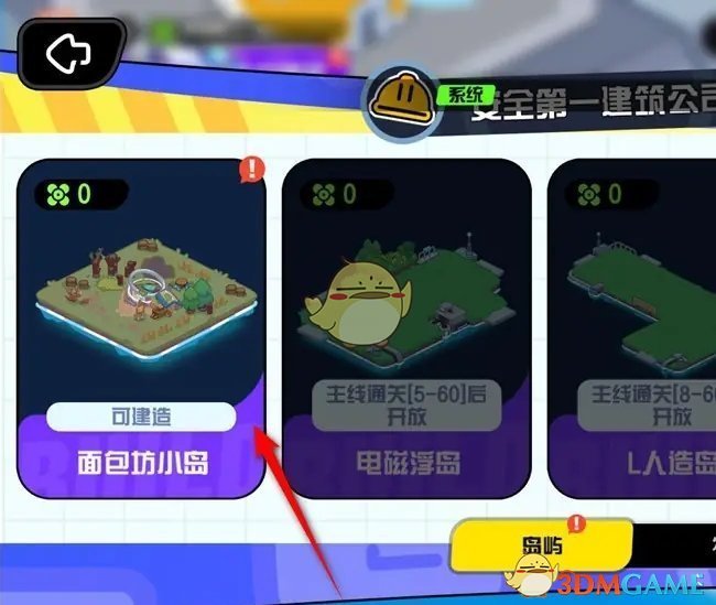 2、随后在建造页面,选择下面的岛屿,点击面包坊小岛;