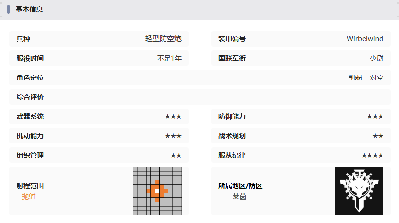 通常技:密集扫射 攻击 冷却时间3回合 自身 前方3*3等级1:装填曳光弹,攻击技能范围内所有敌方空中单位,造成150%火力分摊伤害。