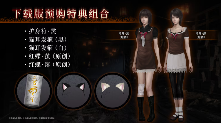 预购奖励服装(红蝶·澪/红蝶·萤):预购即可获得,开局即可装备;早期购入奖励和服:2026年3月25日前购买即可获得;数字豪华版哥特连衣裙:在七之刻开始前返回主菜单→服装选项→新服装中领取;全部隐藏服装合计12套,部分服装有对应的属性加成(主要是护身符效果提升)。