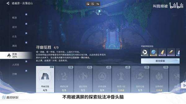 如果想尽快提升探索度建议优先去做溯闻、鲲游、终生、天地和人间世。