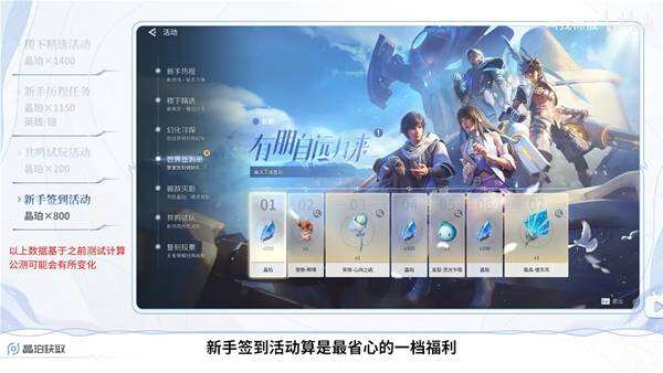 新手签到活动算是最省心的活动了,开服首日就能拿到 200 晶珀。