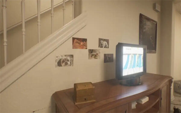 在电视机旁边一共悬挂有五张照片,这些照片是成就解锁的关键。