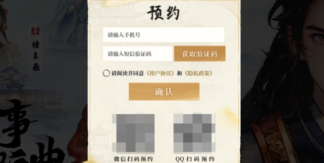 3、出现弹框后,玩家可以选择填写手机号、微信扫码或QQ扫码的方式进行预约。