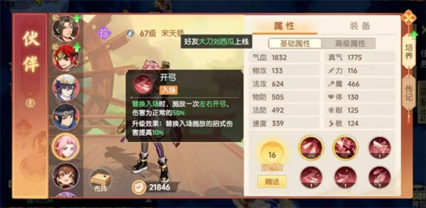 携带了入场被动技能的伙伴有:天下第三、狄千傲、宋天娇、猎妖人、木桩·风风、木桩·炎炎、木桩·林林、木桩·墩墩、逐风。
