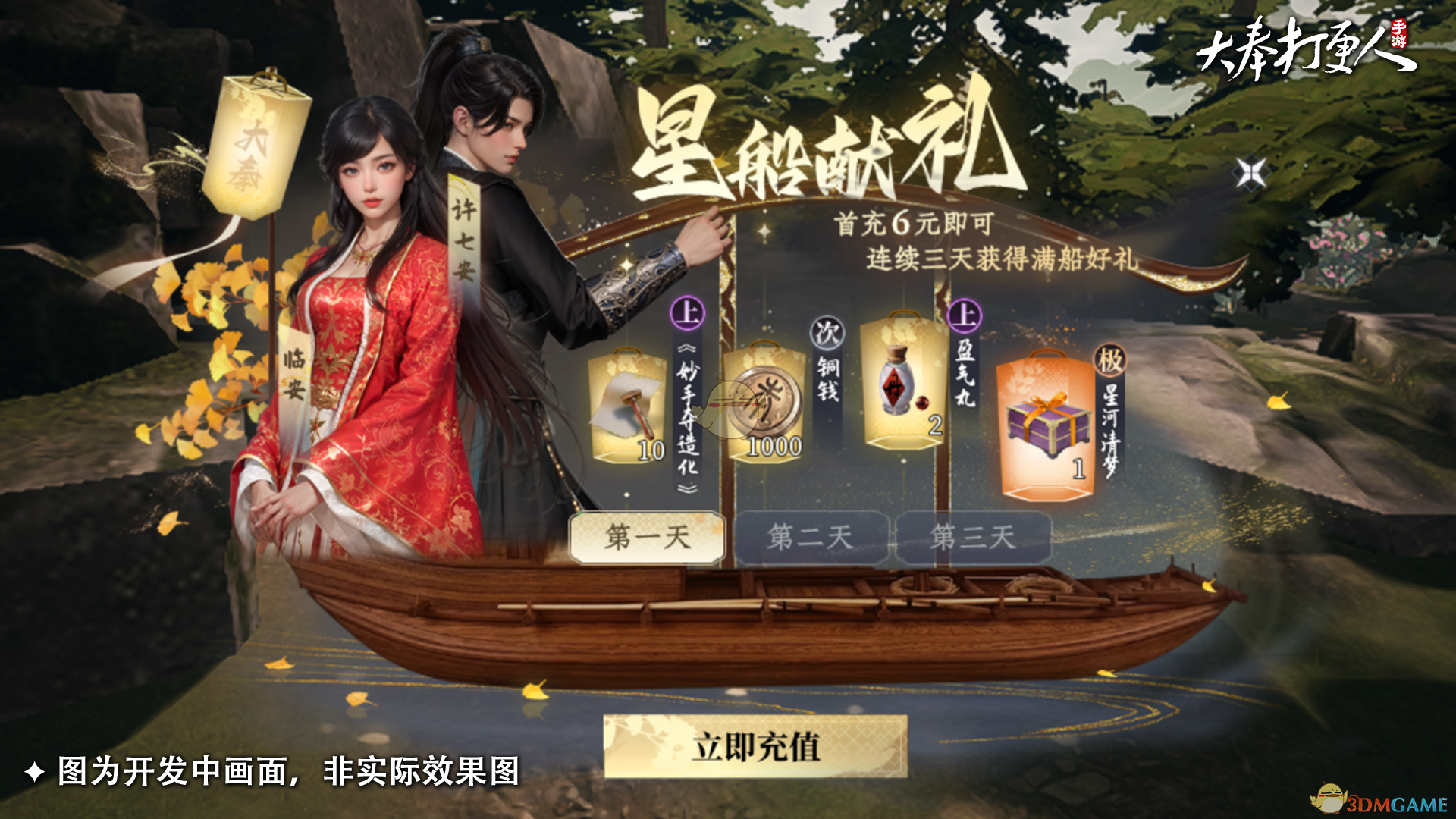 首充6元即可领取许七安、临安同款限定时装“星河清梦”,连续三天均有好礼相赠,累计可领取价值388元超值豪礼。