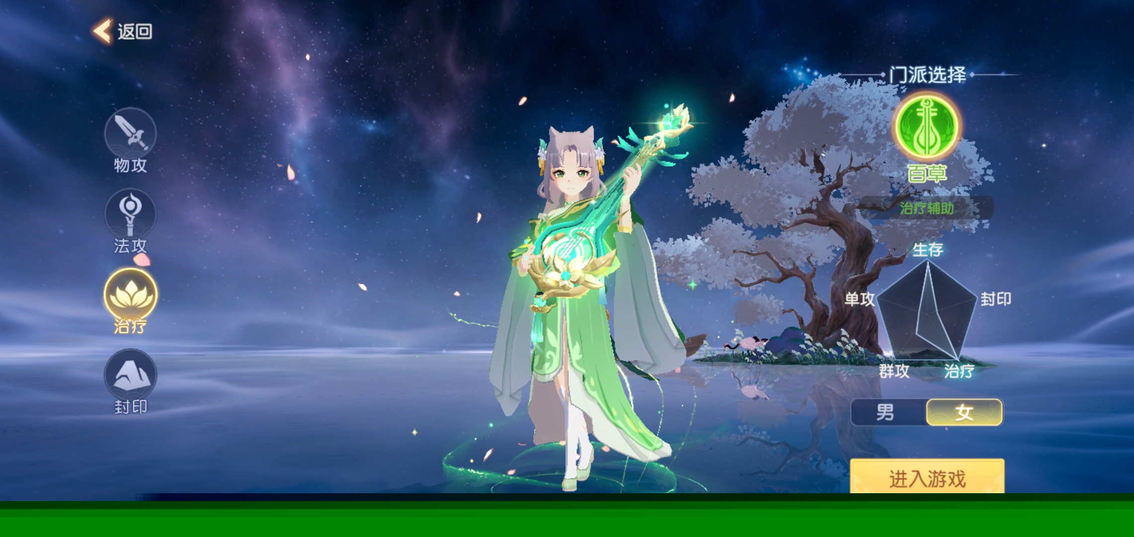 百草治疗门派前期奶量虽少,但中期开始可解封、减伤,是打本必备。