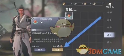 4、最后在弹出的丹药页面,点击使用即可服用丹药获得特殊加成;