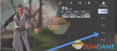 2、然后在背包页面,点击右侧的道具选项;