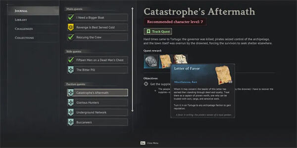 完成派系任务通常会发放恩惠信。例如,海盗队支线任务会奖励玩家 5 封恩惠信,而灾难的余波任务会让玩家获得 10 封恩惠信。