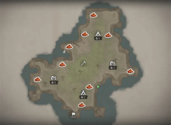 按 M 打开地图,看看沙子从浅米色变深的区域,这里通常是黏土沉积物所在的位置。具体分布包括走私者藏点以南,走私者藏匿点东北,古遗址以西,沿海丛林西侧,旅行者营地以西,旅行者营地西北,旅行者营地正东侧,古代遗迹东南侧,沿海丛林东侧。