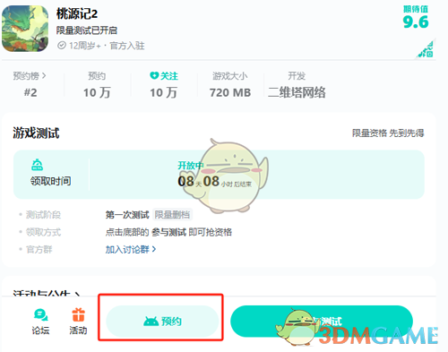 答:在TapTap找到桃源记2游戏,点击预约按钮即可完成预约