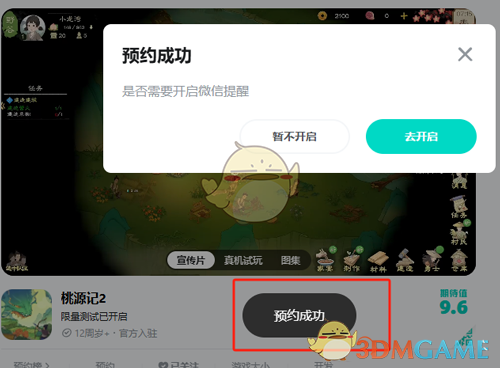 2、完成预约后,显示预约成功后,即可完成桃源记2游戏的预约。