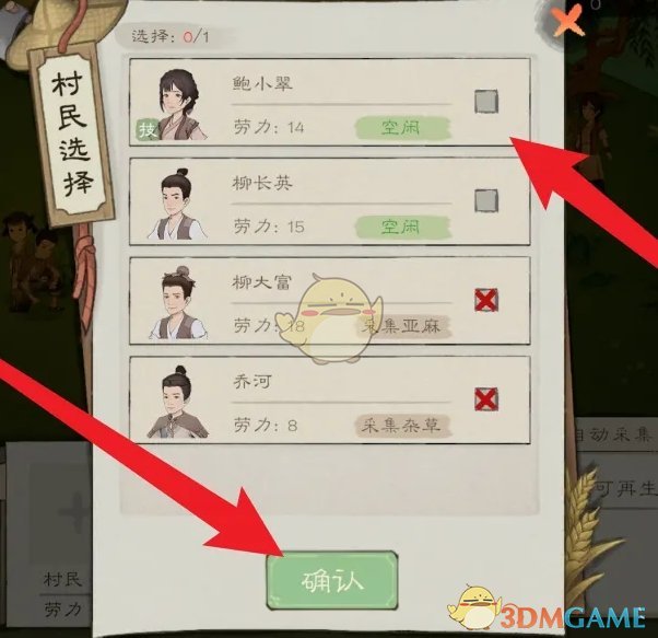 3、然后选择一位空闲的农民,点击确认前往采集树木;