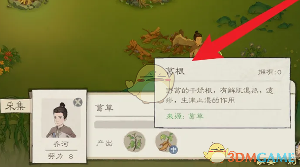 2、通过村民的采集就可以获得大量的葛草原材料;