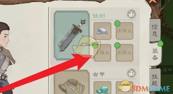 3、在装备页面,点击未镶嵌的按钮;