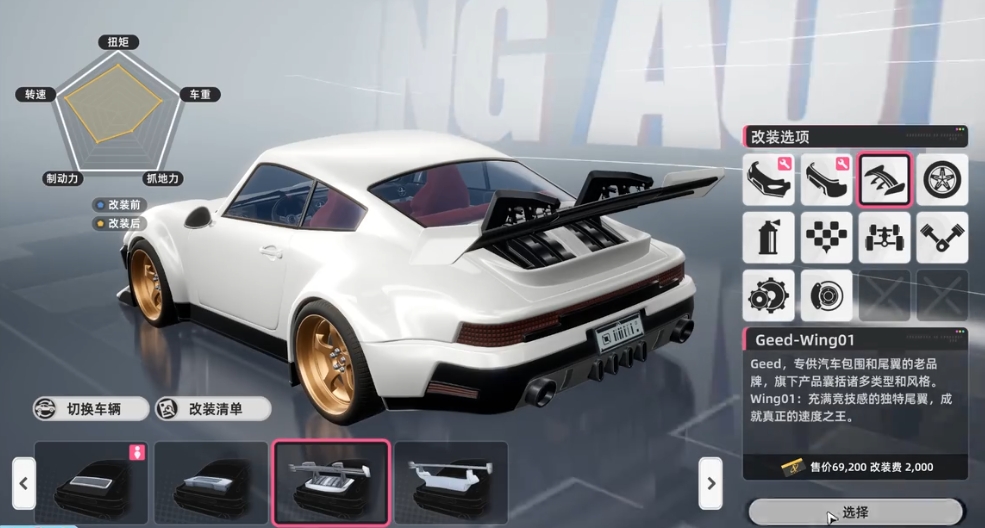 也可以在驾驶的过程中下车漫步,感受都市的喧嚣,或是继续加速,像赛车一样体验速度的极限,还有切换视角的选择,则让大家从不同维度欣赏这座城,或是专注于驾驶的每一个细节,然而对于真正的爱好者来说,仅仅拥有并驾驶这些赛车是远远不够的,改装才是其中的精彩玩法,大家可以前往特定的NPC处,打开那充满无限可能的改装界面,这里从雨刮器、轮胎到前护栏杆,再到核心的动力系统引擎与发动机,每一项改装都是对性能的一次提升。