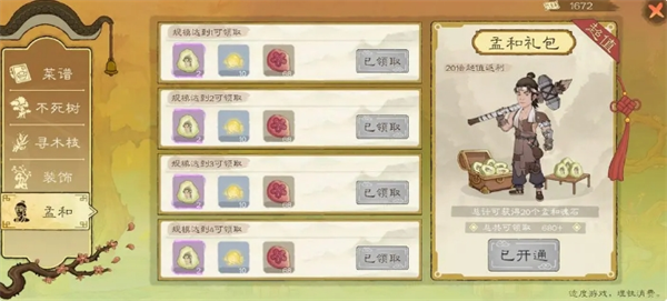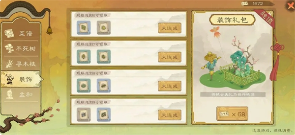 顾名思义,获得一些免费无法获得的装饰品,使你的桃源更好看。