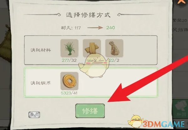 3、最后我们在修缮方式中,选择消耗资源的修缮方式后,点击下方的修缮即可完成建筑的修缮操作。
